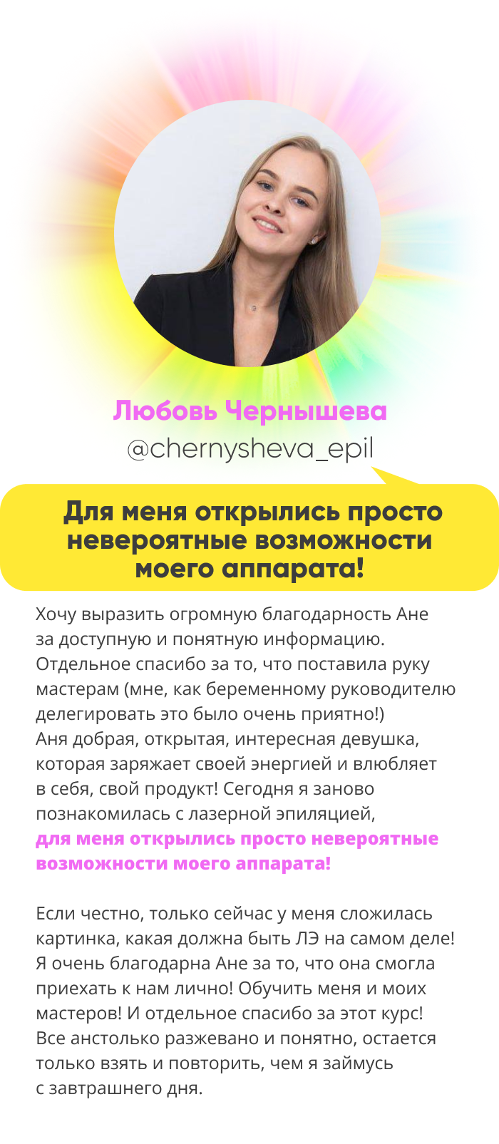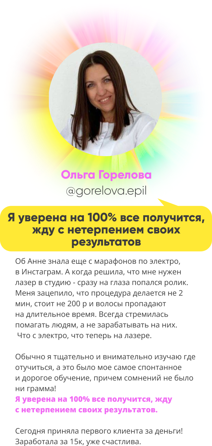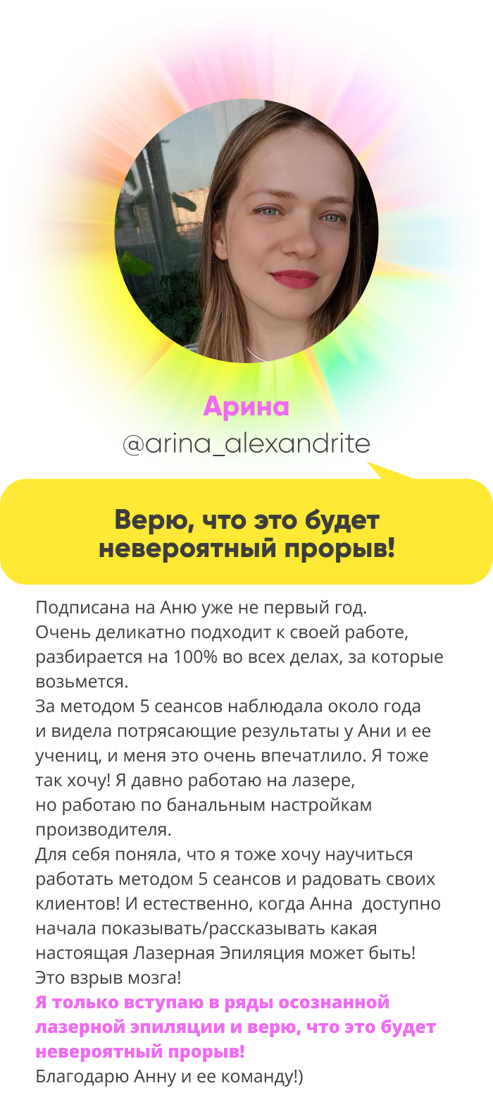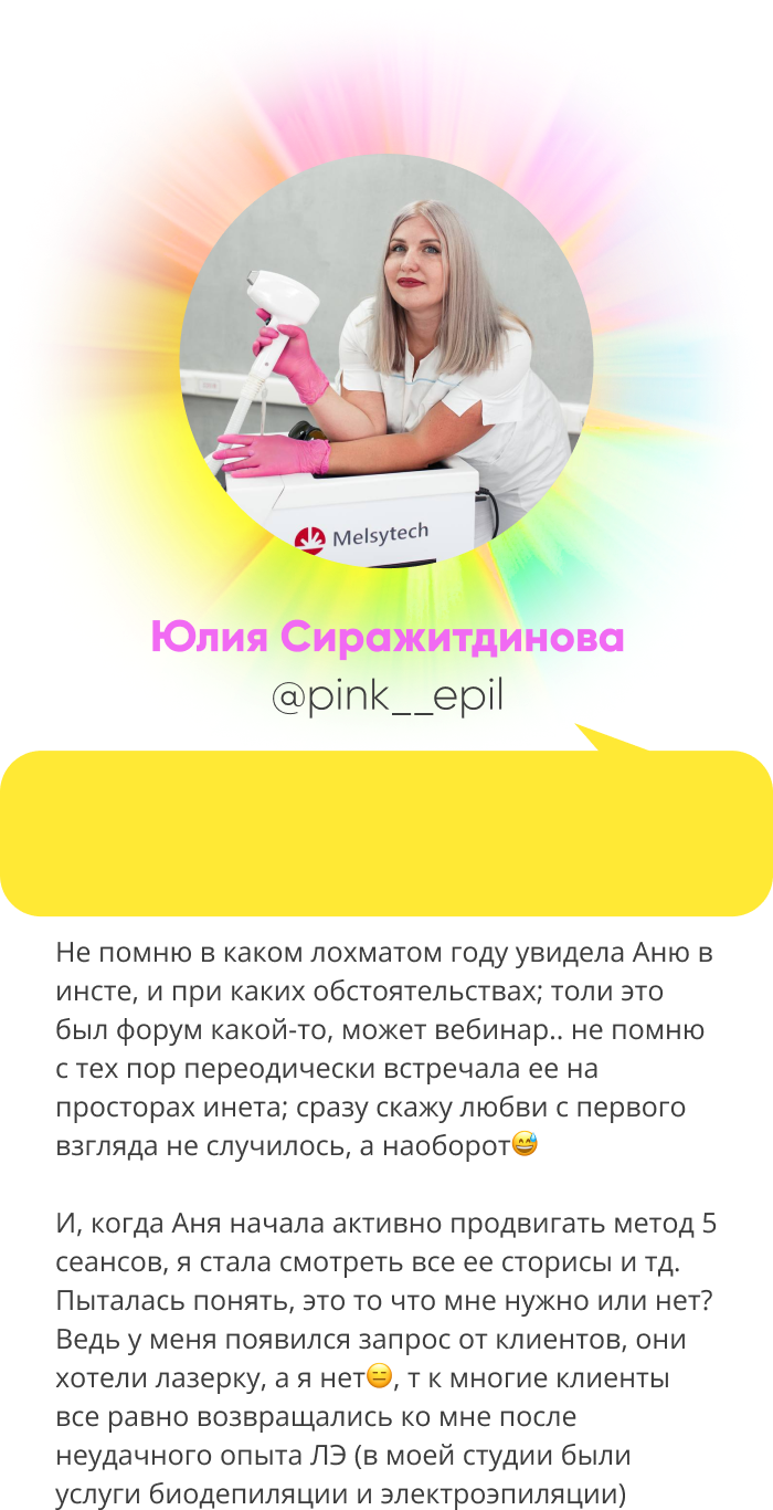 Я расскажу о своей авторской методике удаления волос по методу «5 сеансов» с помощью лазера, докажу, что ЛЭ может быть такой же эффективной, как и электро!