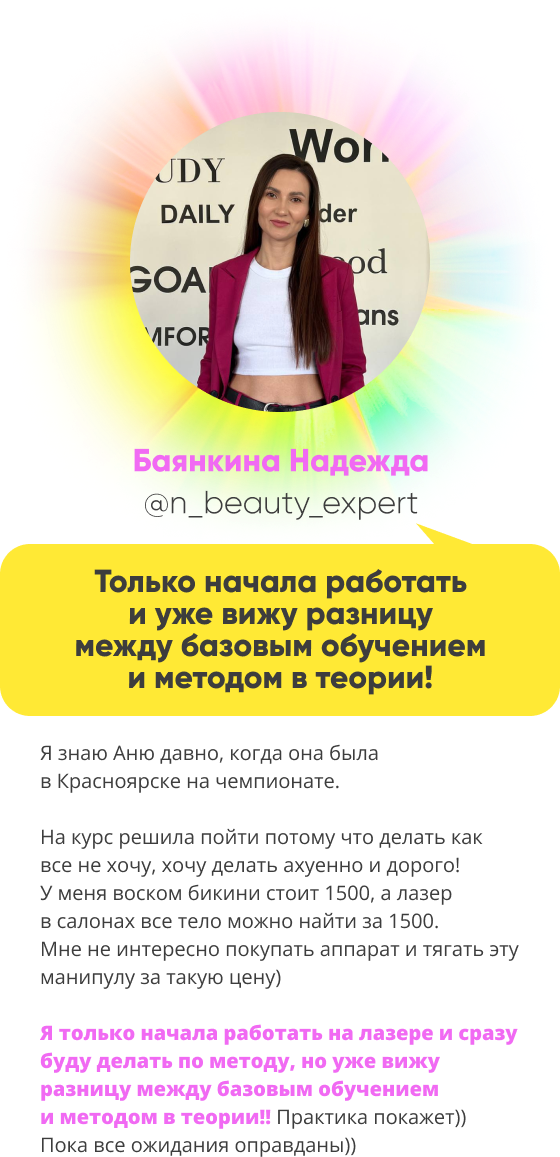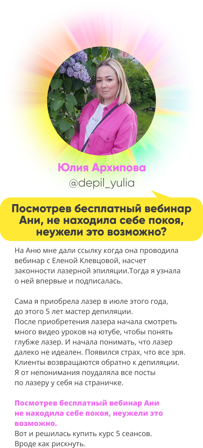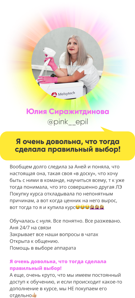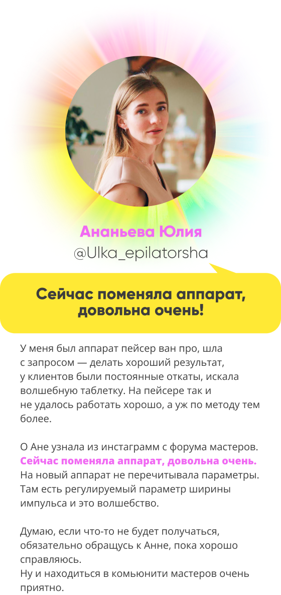 Я расскажу о своей авторской методике удаления волос по методу «5 сеансов» с помощью лазера, докажу, что ЛЭ может быть такой же эффективной, как и электро!